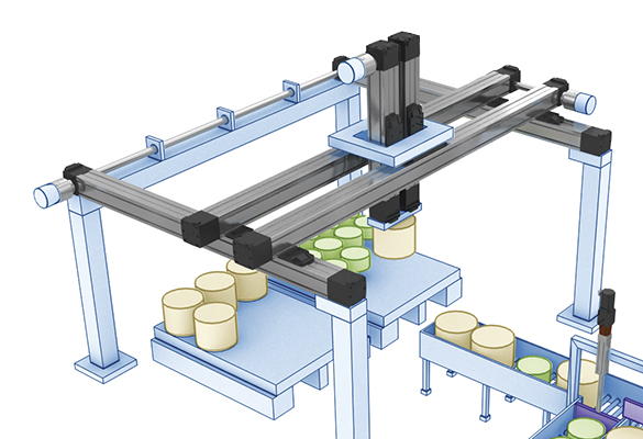 皮帶驅動的直線單元通過單個電機的并聯運行非常簡單,只需用一根惰輪軸連接兩個直線單元,然后將電機安裝在直線單元的外側。絲杠驅動的直線單元需要一系列直角減速機和雙軸減速機來機械連接兩個直線單元。許多客戶利用現代伺服電機和驅動裝置的可靠性優勢,使用帶電子齒輪的獨立電機連接驅動裝置來降低機械復雜度。